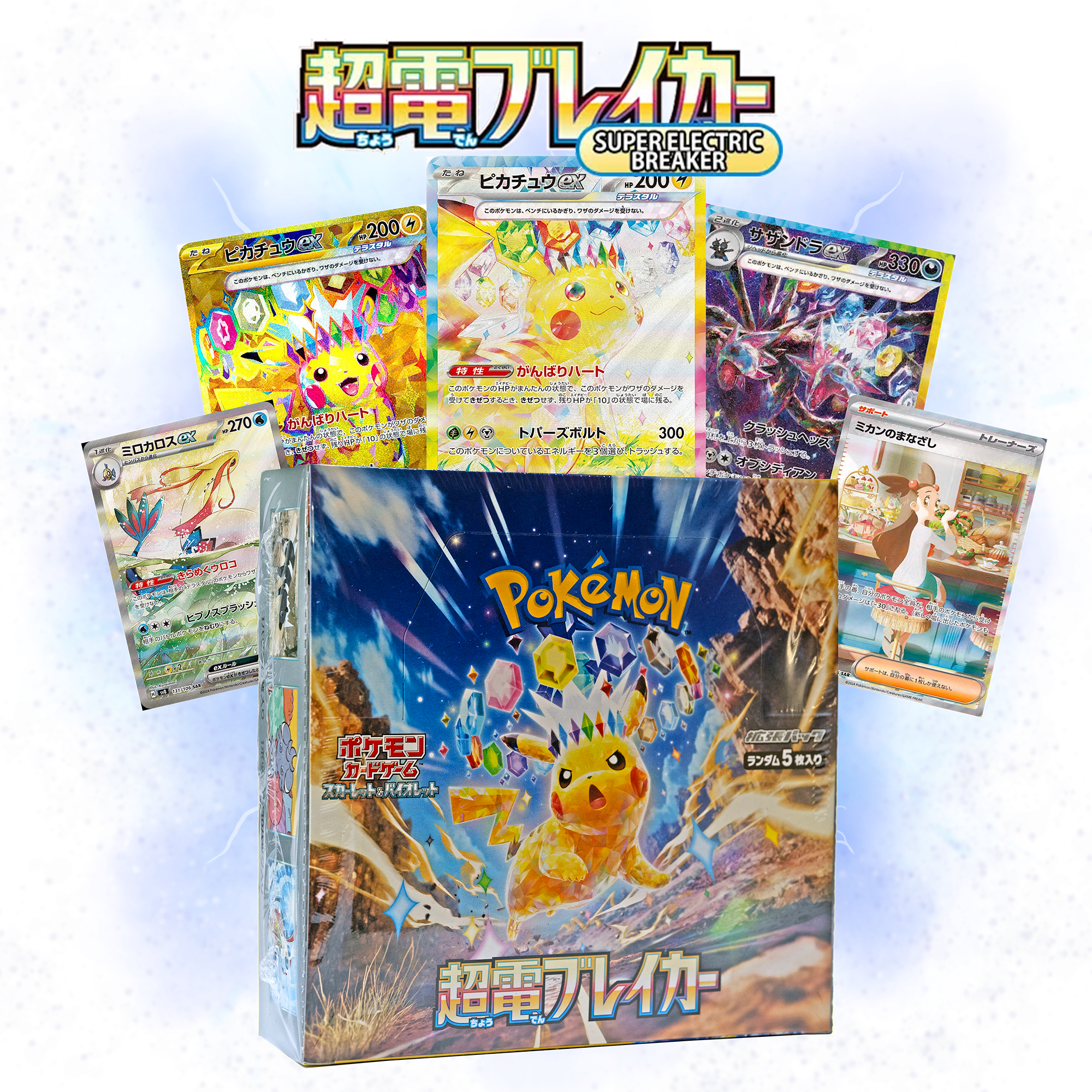 A: Super Electric Breaker includes high-energy Pokémon, stunning holos, powerful EX and VSTAR cards, and rare Japanese-exclusive artworks you won’t find elsewhere.