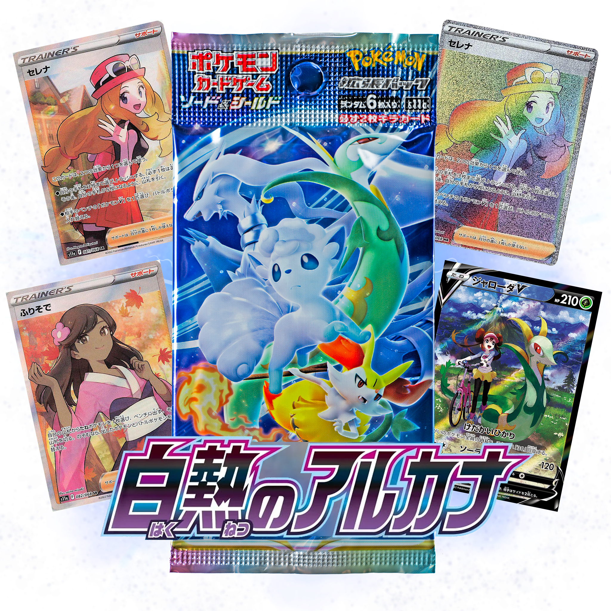 Unleash the brilliance of Incandescent Arcana! This stunning Japanese Pokémon TCG set brings together majestic Radiant Pokémon, powerful VSTAR evolutions, and breathtaking Character Rares. Featuring fan-favorite Pokémon such as Serperior VSTAR, Alolan Vulpix VSTAR, and Radiant Jirachi, this set is a must-have for collectors and competitive players alike.